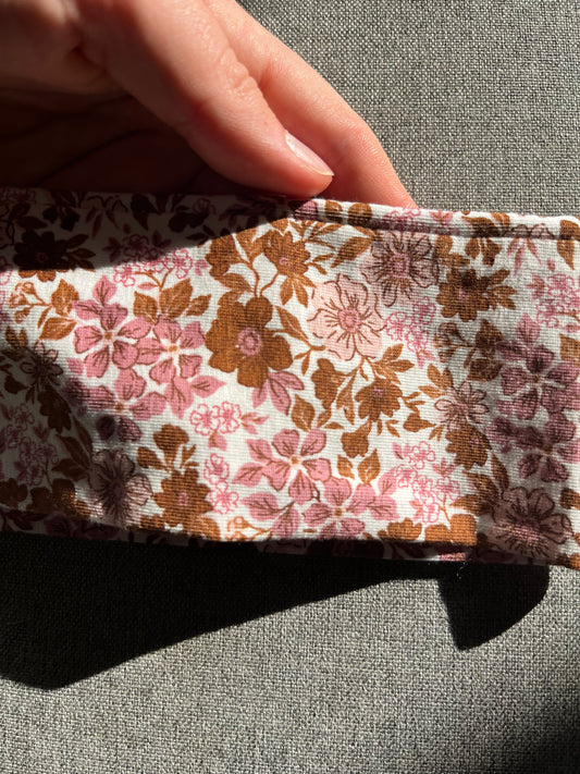 Chouchou en jersey fleuri marron & rose